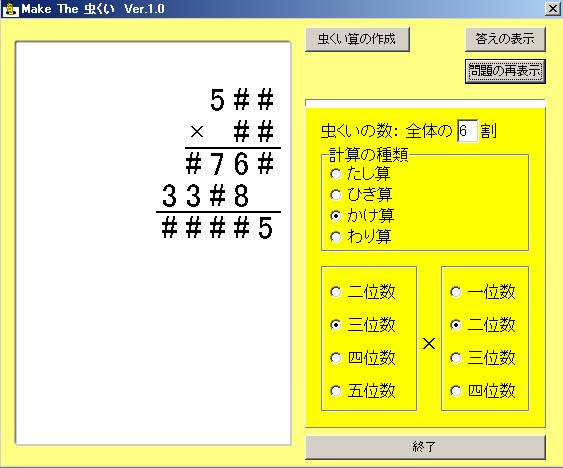 このソフトは、虫食い算の問題をつくるソフトです。