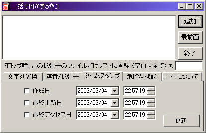 リスト内のファイル全てに対し、チェックをつけたタイムスタンプを、指定した日時に変更します。