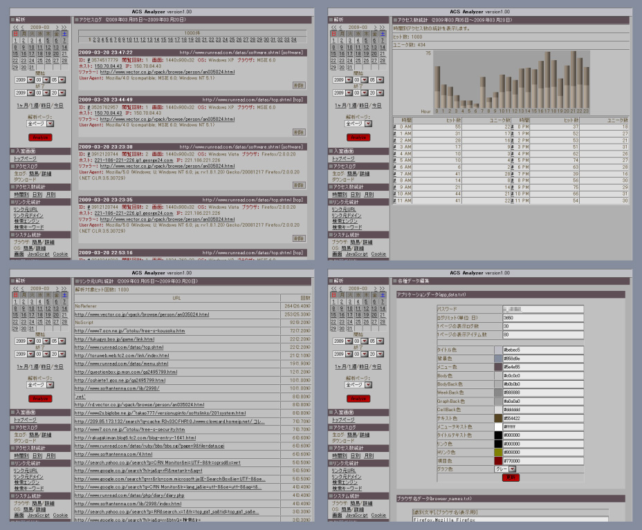 解析項目も、リモートホスト, IP, ブラウザ, OS, リファラー, 閲覧回数..などなど
