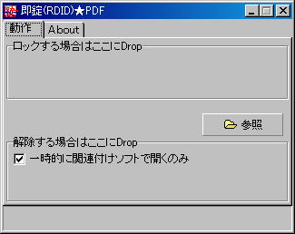 本ソフトはPDFにパスワードを付与するソフト(即錠★の派生版)ですが、RFIDカードを利用してパスワードをロックしたり解除したりできます。つまり「カードの現物で制御する」という考え方です。