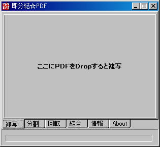 本ソフトは、PDFファイルの「分割」「回転」「結合」を行うソフトです。またファイルの情報(タイトルやセキュリティなど)も設定することが可能です。