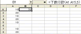 書式 =下数行計(セル範囲,セル数)