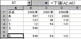 選択範囲のデータが入力されているもののうち、列の一番下端のデータを返します。