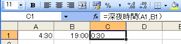 書式 =深夜時間(開始時刻,終了時刻)