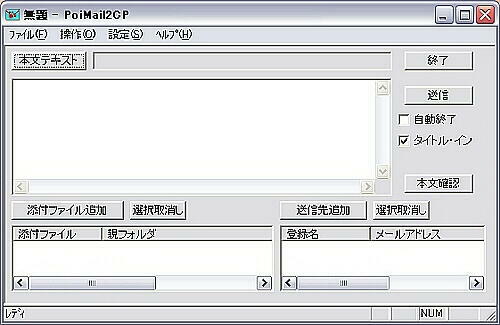 PoiMail2CP は送信機能に特化した送信専用のメールツールです。機能的には前作 PoiMail をより高機能にして操作しやすくしたものですが、設計からすべてやり直したまったくの別物です。したがって互換性はありません。