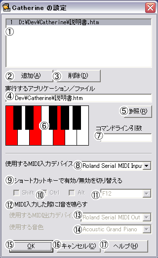 このソフトはコード演奏式ランチャです。つまりMIDIキーボードなどで特定のコードを演奏すると、設定されたアプリケーションやファイルが開かれます。