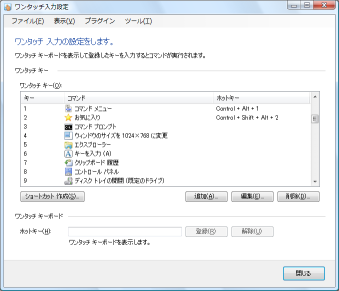 コマンドを実行するには、ワンタッチ キーボード画面でキーを入力するだけです。マウスからも実行できます。全てのコマンドにホットキーを割り当てることができます。