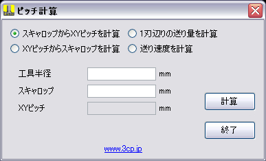 スキャロップピッチ計算・送り速度計算フリーソフト 紹介: