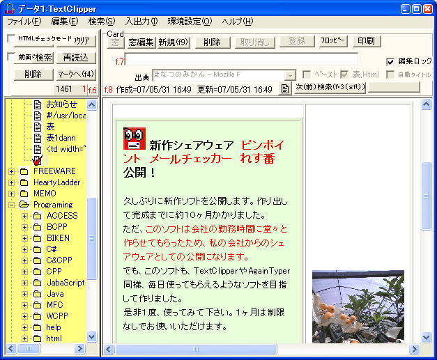 プログラミングやネットサーフィンをしながら手間をかけることなく自然とデータベースにデータが蓄積されていく感じです。これより簡単な保存方法はないでしょう。