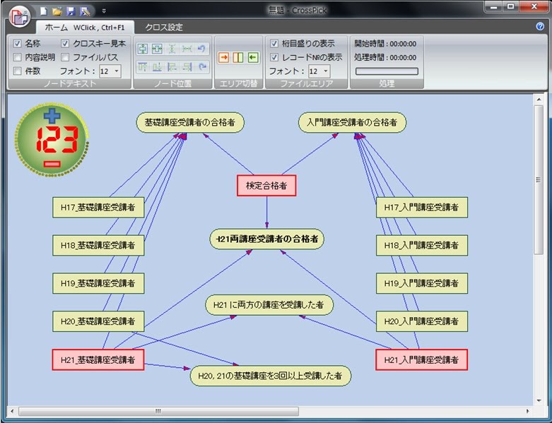 リストのクロス状況とその結果を、ノード(節)とアーク(線)というビュー上の