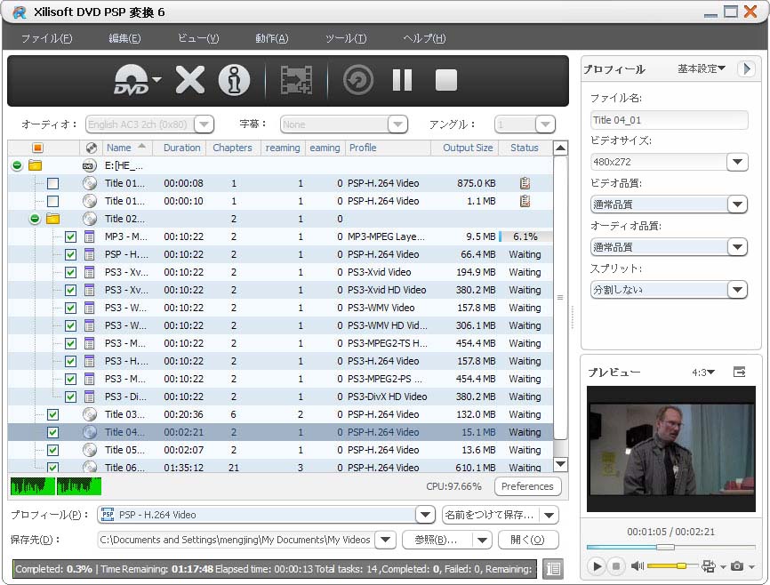 DVDをPSP MP4、PSP H.264/MPEG-4 AVC 動画ファイルに変換します;