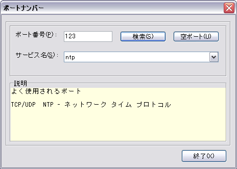 サービス名からポート番号と機能を検索できます。