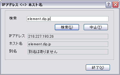IPアドレスからホスト名へ変換できます。 ホスト名からIPアドレスへ変換できます。 ホスト名に別名がある場合には別名を調べることもできます。