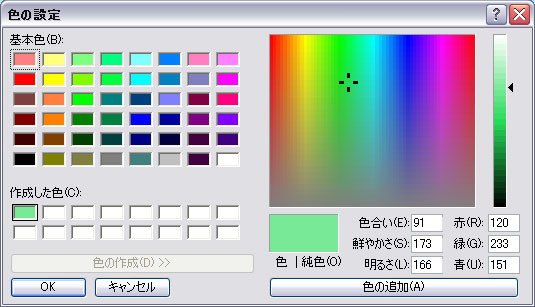 Windows-APIのRGBREF値のマクロである「RGB(n,n,n)」やhtml言語の「bgcolor"#xxxxxx"」の色をコモンダイアログから指定して、その値をクリップボードに転送します。