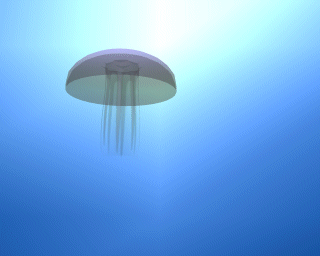 3Dのくらげがスクリーンの中をゆらゆら泳ぎます。