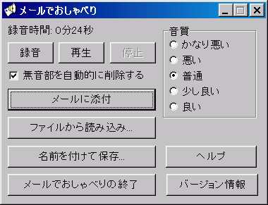 「メールでおしゃべり」を使って圧縮した音声を聞きたい場合は、ここをクリックしてください。ファイルサイズは64kBです。