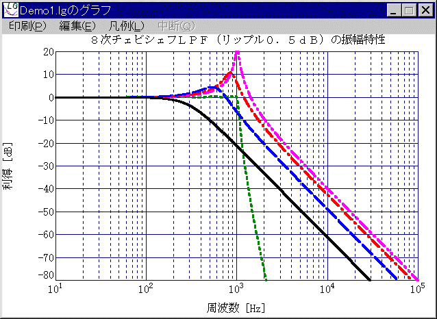 Logical Graffiti(ロジカルグラフィティー)for Windowsは数式をグラフ化するためのプログラムです。もともとは、電気フィルターの設計のために開発されたため、複素数も扱えるようになっています。また、演算は倍精度で行われ、豊富な関数群が用意されています。