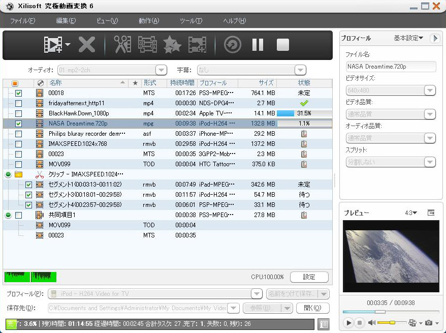 Xilisoft動画変換は、高い機能と優れた汎用性を実現した高画質動画変換ソフトです、AVI 変換、WMV 変換、MPEG変換のほかに、DivX、MP4、H.264/AVC、AVCHD、MKV、RM、MOV、XviD、3GPなどの動画ファイル形式相互変換をサポートし、MP3、WMA、WAV、RA、M4A、AAC、AC3、OGGなどの音声ファイル変換にも対応しています。AVCHDファイルをはじめ、多くのハイビジョンHD 動画ファイル変換もサポートしています。