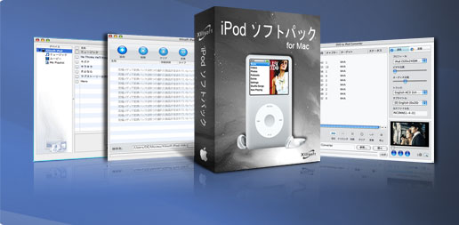 iPod ソフトパック for MacはiPod動画変換、iPod転送にDVD iPod変換機能を加わりワンセットとなり更にパワーアップしました。 iPodソフトパック for Macは3つの製品、iPod転送 for Mac、iPod動画変換 for MacとDVD iPod変換 for Macが含まれています。DVDビデオ、さまざま動画と音声ファイル形式をiPod動画MPEG4とオーディオMP3、AAC、M4Aに変換できます。iPod転送 for MacはiPod内の音楽、動画、ダウンロードした番組(Podcast)などを取り出し、Macへのコピーなどを簡単に行えます。