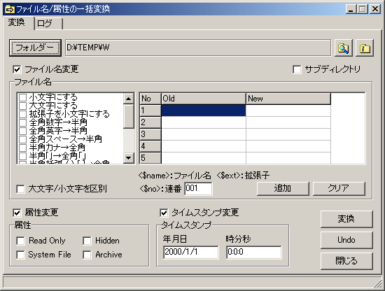 さらに、ファイル名/属性/タイムスタンプの一括変更やフォルダーの圧縮もできます。