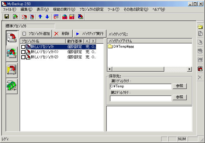 バックアップしたいファイル(フォルダ)をプロジェクトで一括管理できる。