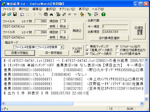 SmCsvMatchは、2つのファイルを項目単位でマッチングして、差分を抽出するツールです。