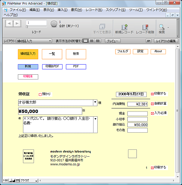領収証 管理印刷データベース 紹介: