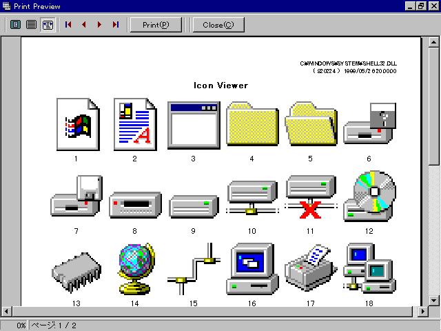 ・このプログラムは、EXEファイルやDLLファイルに組み込まれ たアイコンを表示・印刷するものです。