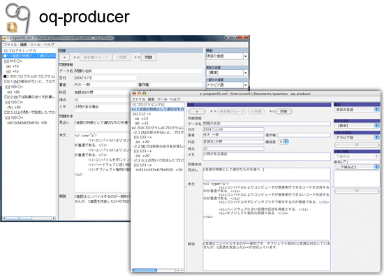 ・問題集データをXMLの知識なしにGUIを用いて作成可能