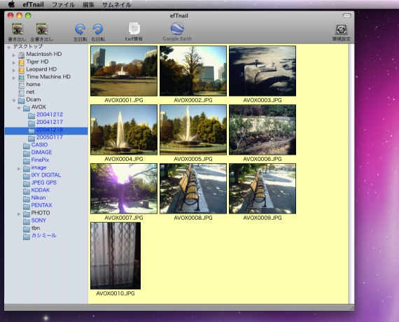 efTnail(エフティーネイル)は、デジタルカメラで撮影した画像からサムネイルを書き出すソフトです。