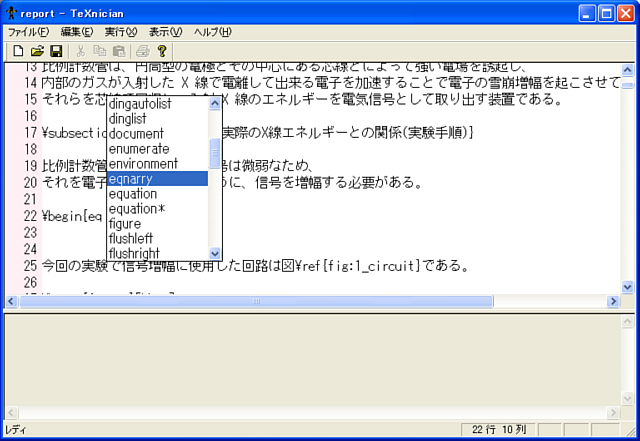 TeXnician は、コマンド補完機能を搭載した、TeXの統合環境です。