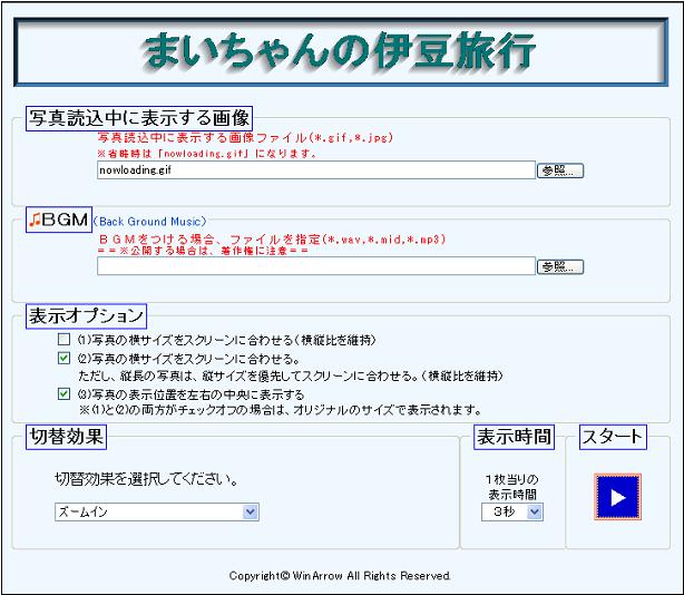 現在、ムービーを作成する動画編集用ソフトが沢山市販(フリーソフトを含む)されていますが、本ソフトは、WEBブラウザ(InternetExplorer)でスライドショーが楽しめる環境を簡単にしかも手軽に作成できます。
