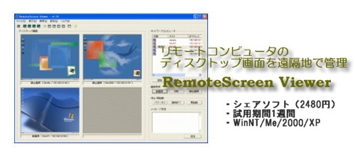 RemoteScreen Viewer はネットワーク上のクライアントコンピュータ ディスクトップ画像を用いて複数のネットワークコンピュータを同時に監視することを主とした監視ソフトです。(ViewerとClientで動作します)