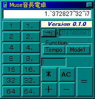Midiシーケンサソフト(フリー)Museのデータ作成時に音長計算を電卓感覚で行う補助ソフト