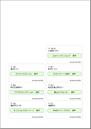 印刷プレビュー制御コンポーネントの機能を使用して,図のように,データベースの住所データなどをタックシールのラベルに印刷するプログラム作成のために開発したコンポーネントです。1頁1シール(1ラベル)にすれば単票形式の帳票類にも利用できます。