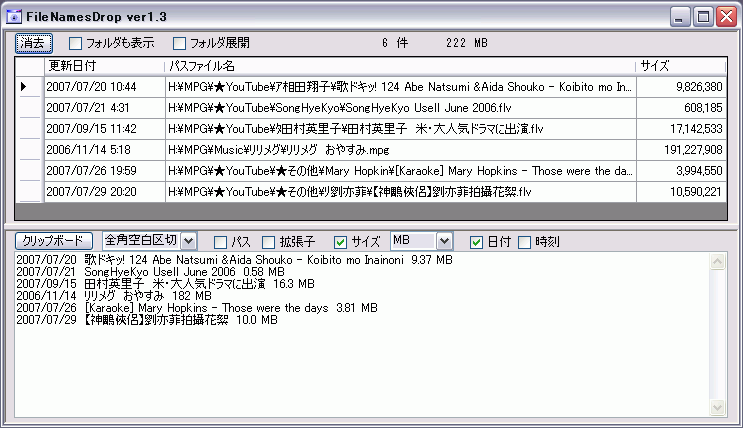 DVD-Rに保存するためのファイルサイズ合計確認とファイル名一覧の複写のために作成しました。