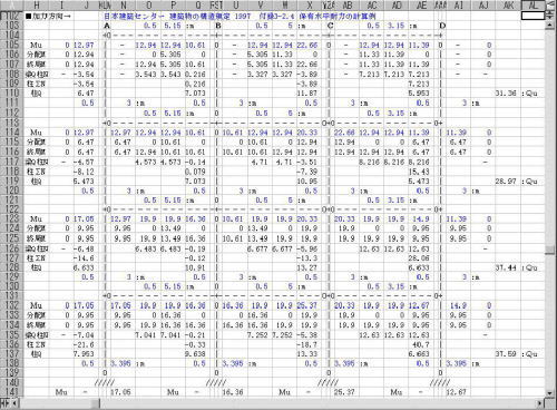 ●計算表の組立はRCM表記法により層数とスパン数を入力することによりプログラムが自動で行います. プログラム上の節点数の制限はなくあくまで使用する表計算及びメモリーに依存します.