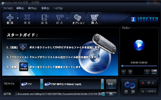 iSofter DVD PSP 変換はDVDをPSP用MP4に変換するPSP向けDVDリッピングソフトです。
