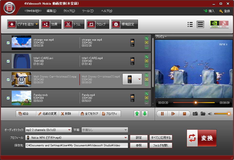 4Videosoft Nokia 動画変換はオールインワンの専門的な変換ソフトとして、すべての動画ファイルをMP4、3GP動画形式及びAAC、MP3、WAVなどの音声形式に変換できます。Nokia N90、Nokia 6205、Nokia E71、Nokia 5800、Nokia E63、Nokia E75、Nokia E71、Nokia N96などに適用します。