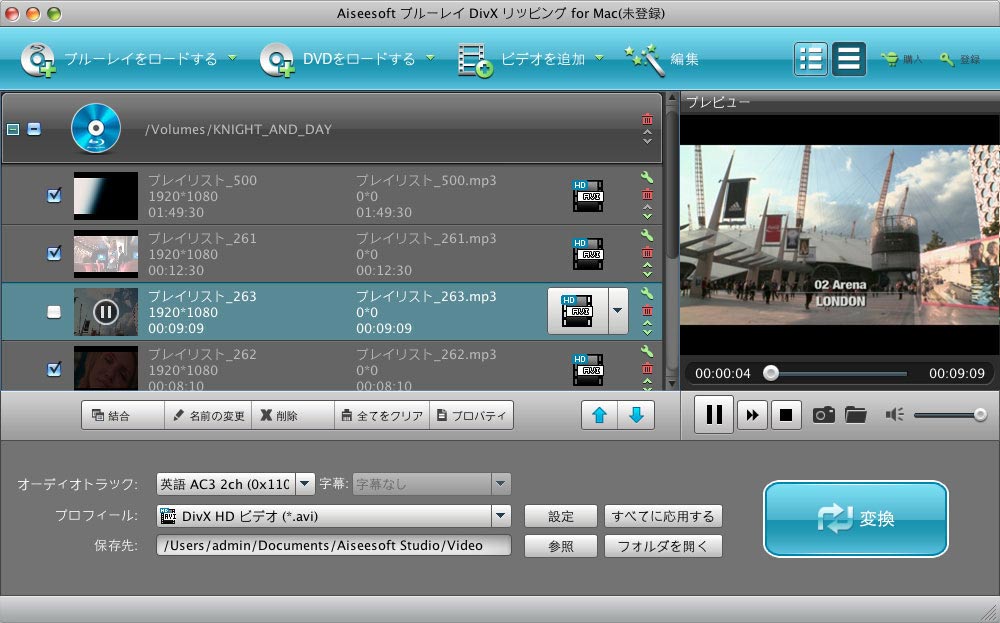 理想な動画効果を得るには、賢明な選択は Aiseesoft Mac ブルーレイ DivX リッピングです。このソフトはトリム、クロップ、結合などの強力な編集機能があり、出力の設定をカスタマイズすることも、特定のビデオの長さを取得することも、全部できます。