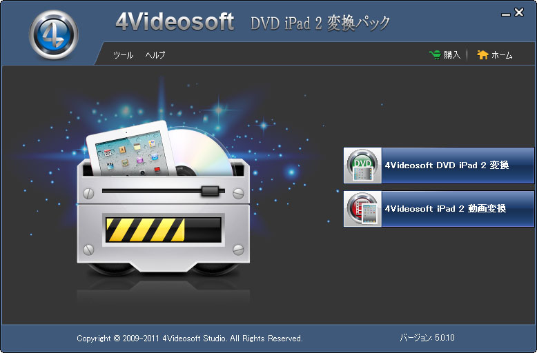 4Videosoft DVD iPad 2 変換パックはDVD iPad 2 変換とiPad 2 動画変換の二つの強力なiPad 2変換ソフトからなります。このDVD iPad 2 変換パックによって、全てのDVDと普通の動画をiPad 2用の形式に無損失に高速度と高音質に変換できます。