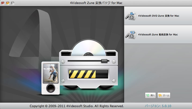 4Videosoft Zune 変換パック for Macは DVD Zune変換for Macと Zune動画変換for Macという二つの強い機能を持って、一番先進的で有力なMac Zune 変換ソフトです。もちろん、このMac DVD Zune 変換ソフトは、MacでDVDをZuneのWMV、MP4、H.264・MPEG-4 AVC(.mp4)ビデオとAAC、MP3、M4A、WMAオーディオに変換することができます。それに、Mac環境で主流のビデオ、オーディオ、HDビデオをZuneのMP4、H.264・MPEG-4 AVC (.mp4)、WMV、MP3、AAC、M4A、WMA形式に変換できます。
