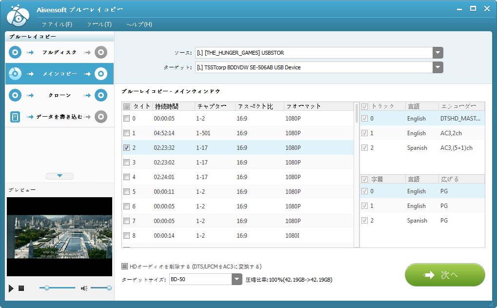 この最高なブルーレイコピーはブルーレイディスク全体或いはただメインムービーをコピーできます。コピーした後、ターゲットブルーレイはオリジナルブルーレイの品質を維持できます。