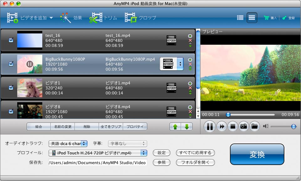 AnyMP4 iPod 動画変換 for Mac 紹介:
