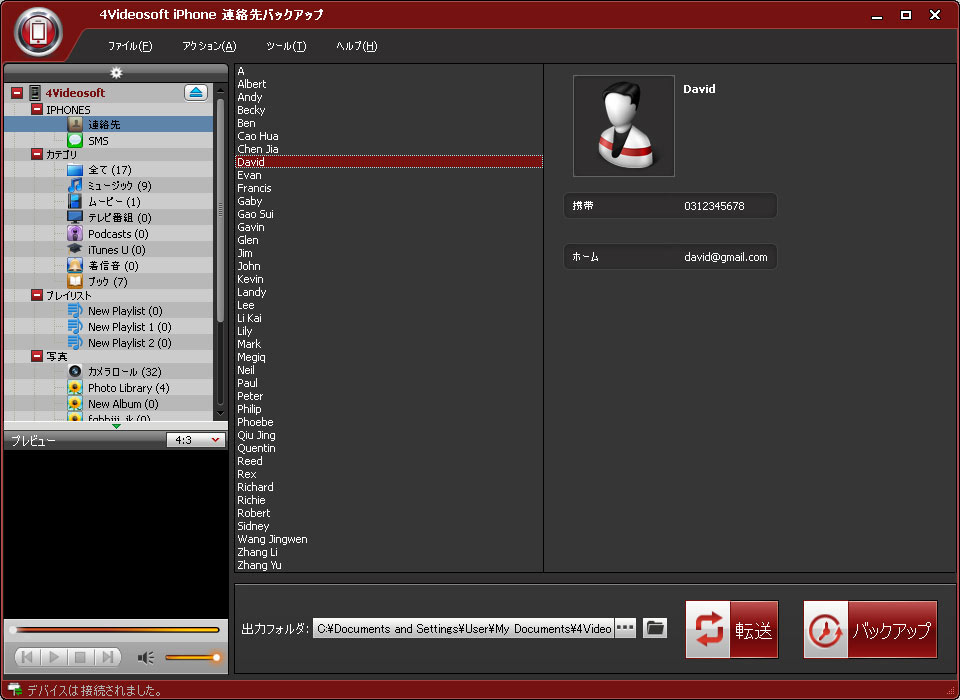 4Videosoft iPhone 連絡先バックアップ 紹介: