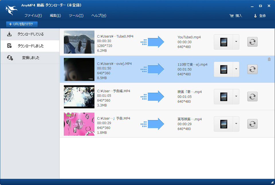 また、必要に応じて、再生した動画をMP4、AVI、TS、WMV、MOVなど必要とされる形式に変換して、ポータブルデバイスに入れて楽しめます。ほかに、ローカルに保存する動画を追加して、ほかの動画形式に変換することもできます。また、動画から音声を取り出し、ほかの音声形式に変換できます。iPad、iPhone (iPhone 6/6 Plus)、iPod、Samsung Galaxy S3、Samsung Galaxy Note 2、Galaxy Tab、Surface、Google Nexusなどの主流デバイスなど多くのデバイスに対応できますので、汎用性が高いです。