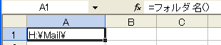 セルに直接関数 =フォルダ名(